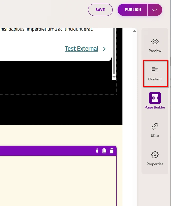 - On the page you want to link to/pull content from, add content to these fields in the Content Tab on the right: